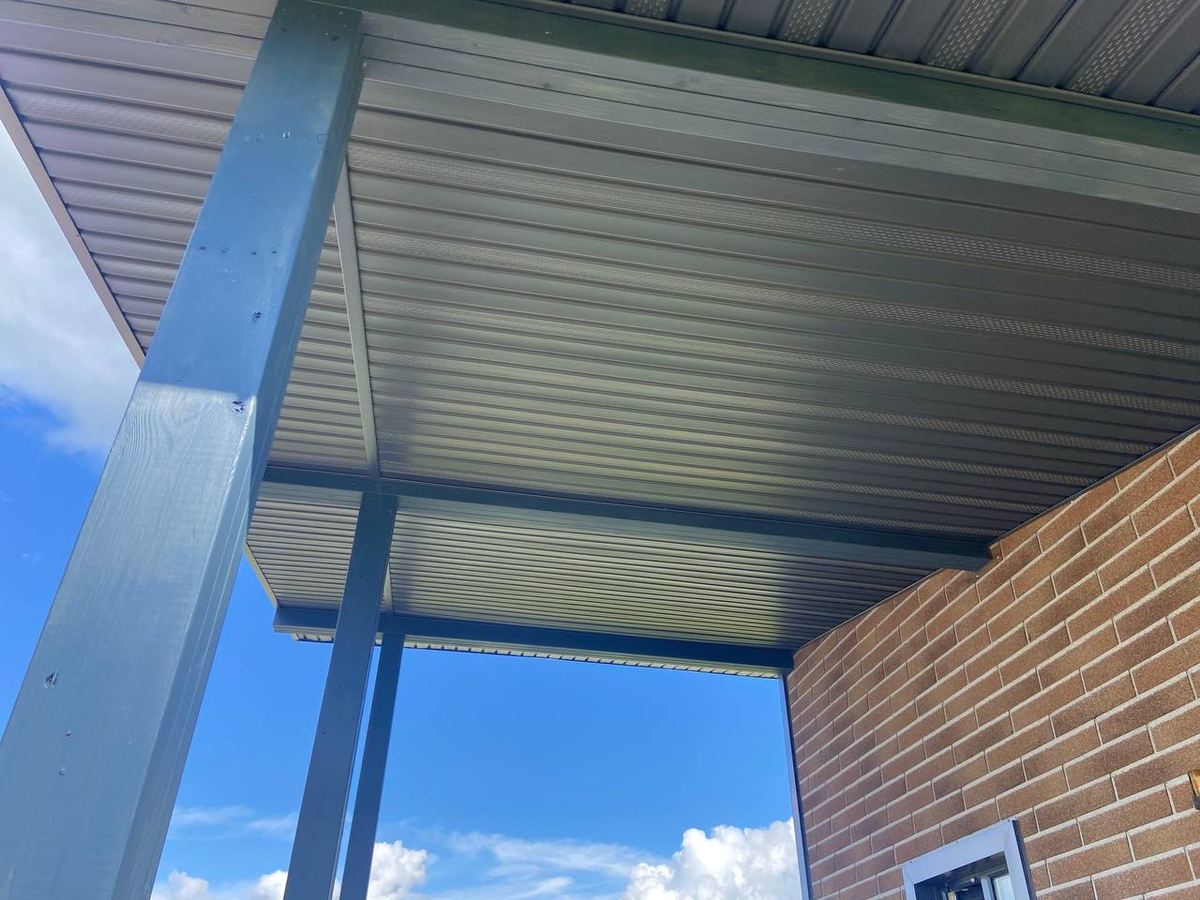 - Стальные софиты (оцинкованные или с полимерным покрытием): Очень прочные и долговечные. Однако они значительно тяжелее винила и алюминия, что требует более надежного крепления стропильной системы. Без качественного защитного покрытия (цинк или полимер) подвержены коррозии. Цветовая гамма определяется покрытием. Монтаж сложнее из-за веса и необходимости специального инструмента для резки. На дачных домиках используются реже из-за избыточной прочности и веса, если только это не часть общей стальной кровельной системы.