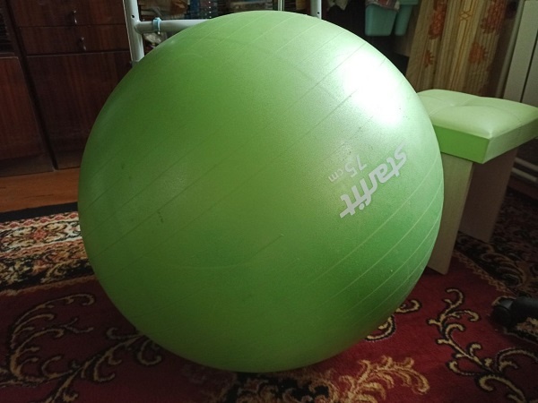 Ну и главное. Мне все неймется, уже и ЛФК поднадоели. Ощущаю, что для верхней части мне постоянно требуется движение. А это полезно, укрепляются мышцы спины и поясницы. В общем, несколько дней назад достала я опять свой мячик. Обтерла пыль и придумала первые упражнения.