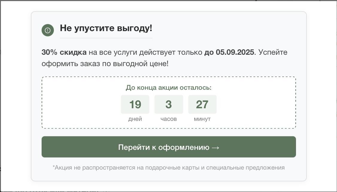 1. 30% скидки на новые заказы до 5 сентября 2025 года