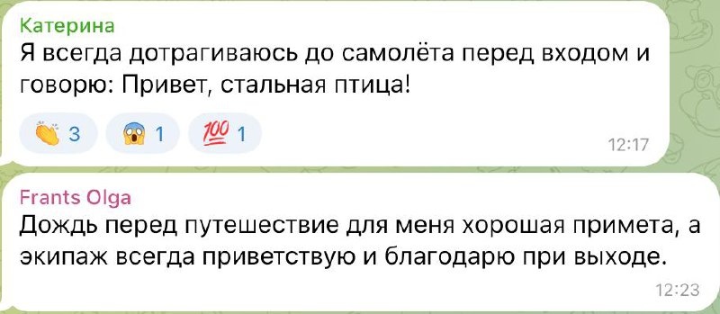 В ответ на пост Надеть красное, дважды переобуться и дождаться дождя: в День Воздушного Флота России мы решили собрать лайфхаки, позволяющие всем участникам полета чувствовать себя в небе спокойно. Так, пилоты кладут на штурвал монетку, стюардессы постукивают стеклянной посудой, а пассажиры разговаривают с самолетами. Подробнее написали на ТурДоме. @tourdom