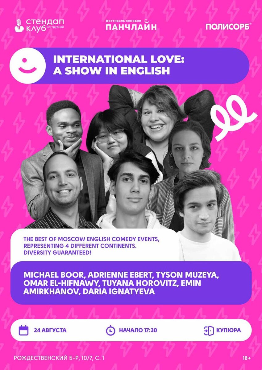 The best of Moscow English Comedy Events, representing 4️⃣ different continents. Diversity guaranteed!