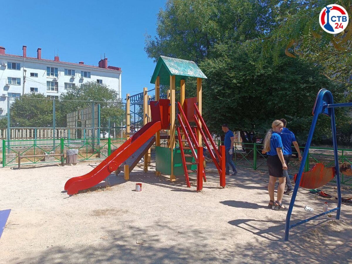 Михаил Развожаев дал задачу привести в порядок детскую площадку на ул. Маршала Бирюзова,1 Представители Ленинской администрации, молодежного, общественного совета, а также депутатского корпуса Ленинского района облагородили площадку. Там установили песочницу, идут покрасочные работы. До конца года там уложат резиновое покрытие и полностью заменят малые архитектурные формы. 📺СТВ 24 | Подписаться