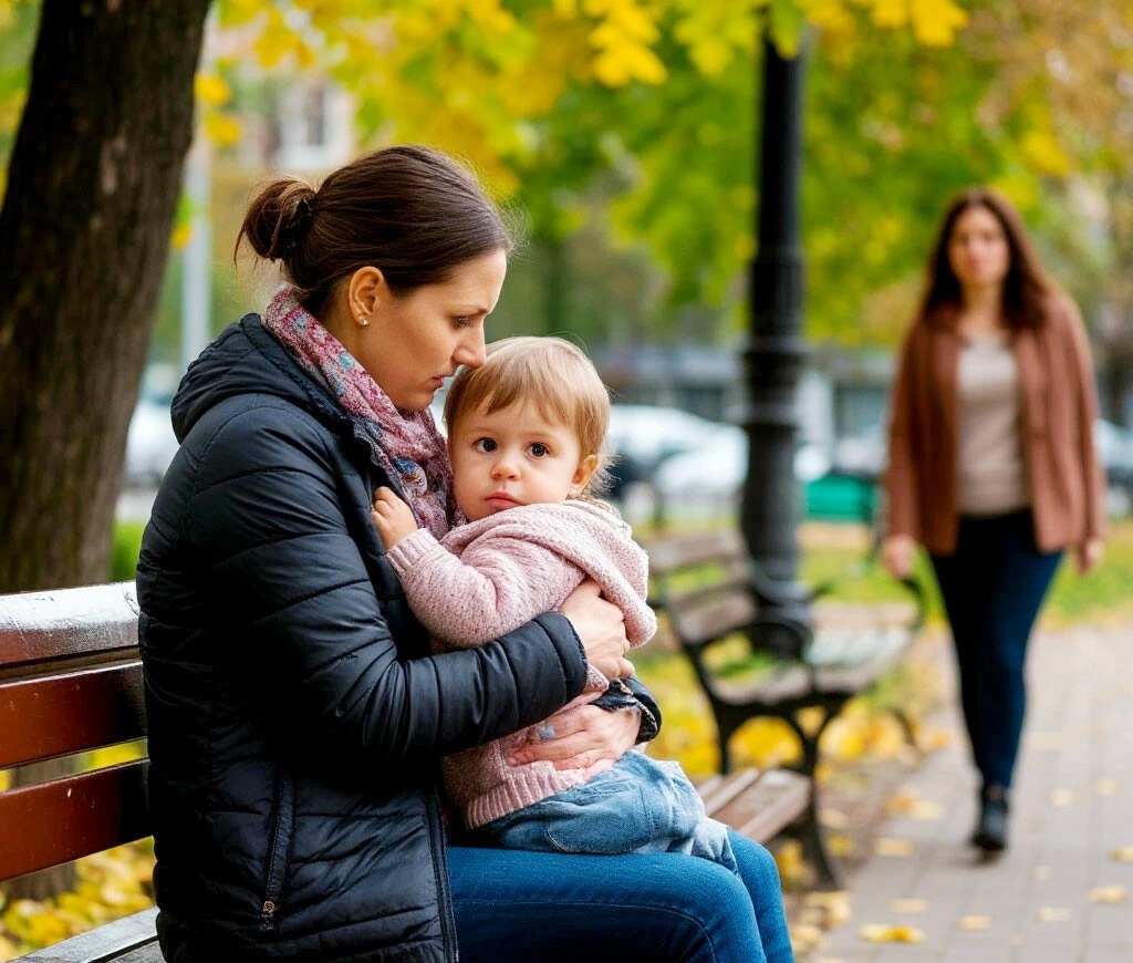- Алиса, мы не кричим на ребенка. И тем более, не бьём его! - с укоризной говорит ей подруга, обнимая сына, который, чувствуя поддержку матери, ещё сильнее заходится криком.