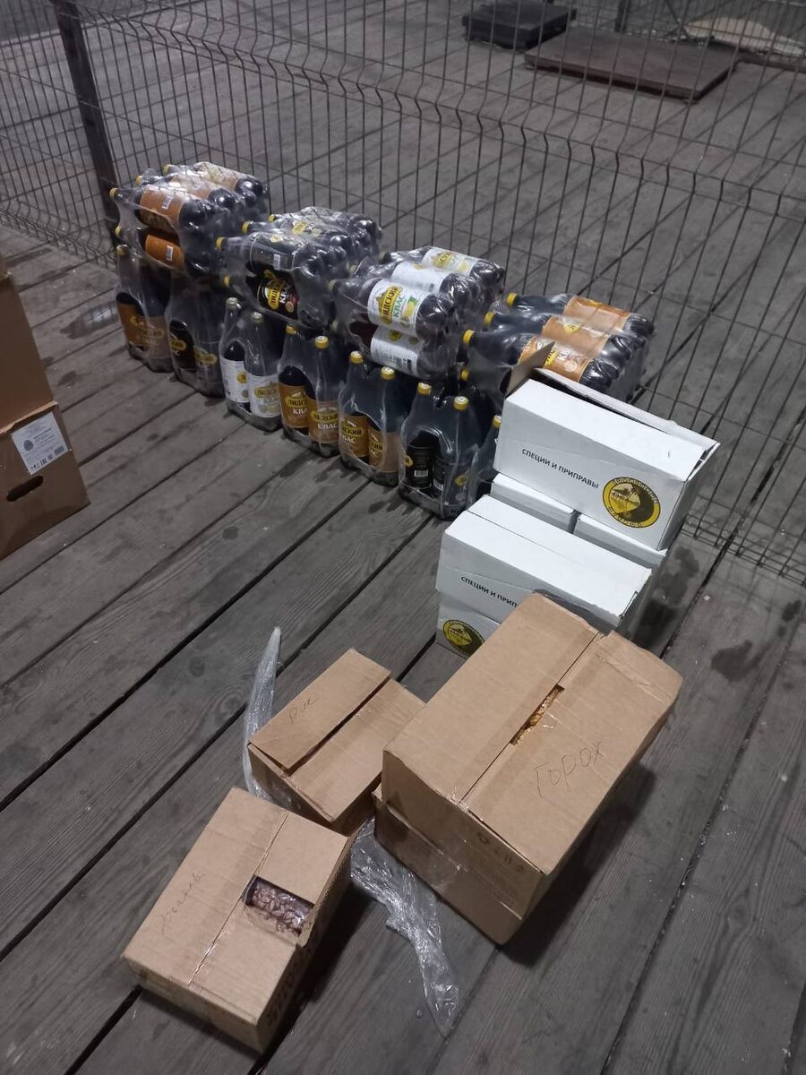 • более 50 коробок с различными продуктами питания.