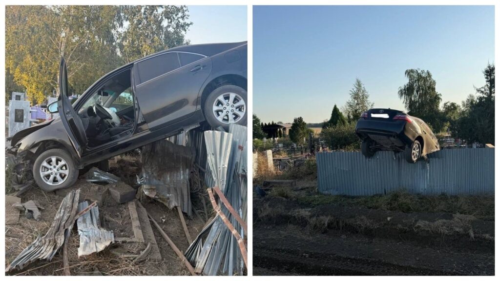 Иномарка зависла на заборе кладбища после ДТП в Краснодарском крае