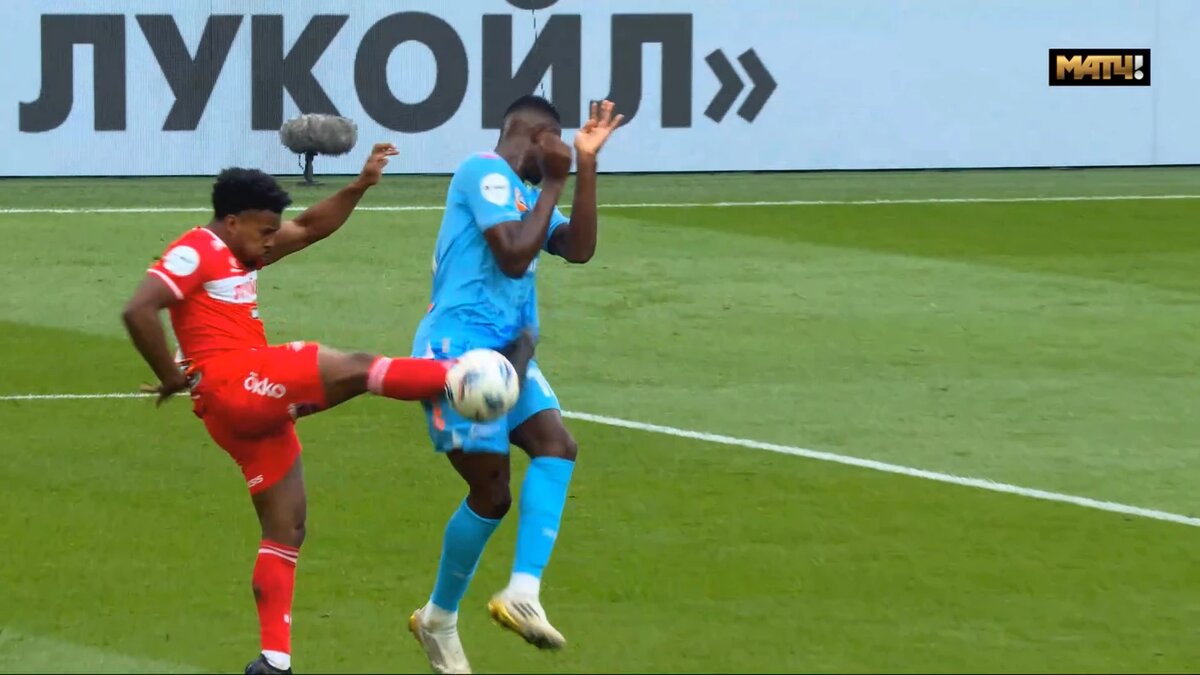 Самый спорный эпизод матча. Здесь мы сталкиваемся с легкими касаниями в ногах в штрафной, которые приводят к одиннадцатиметровым. Это происходит уже в третий раз в сезоне, предыдущие два случая произошли пару недель назад, и что примечательно, были в матчах с участием «Спартака» и «Зенита».