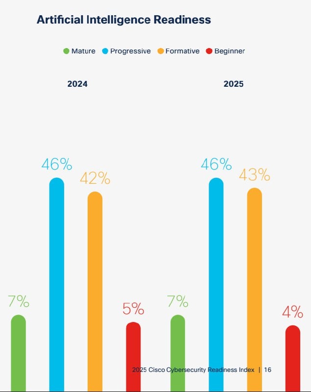 86% компаний сталкиваются с реальными ИИ инцидентами: почему это важно 52% сотрудников не знают угроз ИИ — где ошибки в обучении Существует прекрасный отчет компании Cisco по готовности компаний к своей защите за 2025 год. И ситуация с ИИ грустная ⚠️ 86% организаций имели инциденты с использованием AI за прошедший год. ⚠️ Недостаточная зрелость в управлении данными для обучения моделей — 41% не имеют достаточного контроля. ⚠️ 52% сотрудников не понимают, как злоумышленники используют AI. ⚠️ 60% не знают, какие запросы сотрудники отправляют в GenAI-инструменты. 🔴 Только 4% компаний способны противостоять современным угрозам ИИ. 💥 Хакеры активно используют новые техники атак: prompt injection, jailbreak, voice-based jailbreak, data extraction из обучающих данных. 🔥 38% компаний столкнулись с Data poisoning когда производилось подмешивание неправильных/вредоносных данных в процесс обучения моделей. 🔥 43% компаний столкнулись с кражей моделей или несанкционированным доступом к ним.