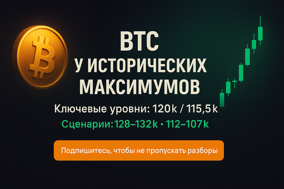 - 🎯 Пробой 120 тыс. $ открывает малую (5) к 128–132 тыс. $.