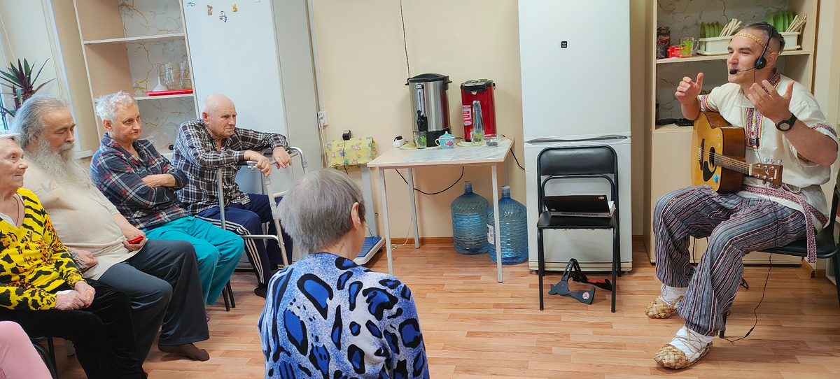 Миша Инжелант подарил радость пациентам отделения сестринского ухода в Никольском В это летнее субботнее дождливое утро отделение сестринского ухода в стационаре Тосненской клинической межрайонной больницы города Никольское Ленинградской области наполнилось теплыми звуками и искренними эмоциями. Поводом для этого стало благотворительное выступление известного музыканта Михаила Попова, более известного под псевдонимом Миша Инжелант. Михаил, известный своими душевными песнями и активной гражданской позицией, приехал в Никольское с важной миссией – подарить частичку своего творчества и, что самое главное, свою заботу и внимание пациентам отделения сестринского ухода. Встреча прошла в атмосфере искренней теплоты и взаимного уважения. В течение своего визита Михаил исполнил ряд своих любимых песен, которые нашли живой отклик в сердцах слушателей. Музыка, наполненная смыслом и добротой, стала настоящим подарком для тех, кто находится на попечении отделения. Пациенты, несмотря на свои недуги,