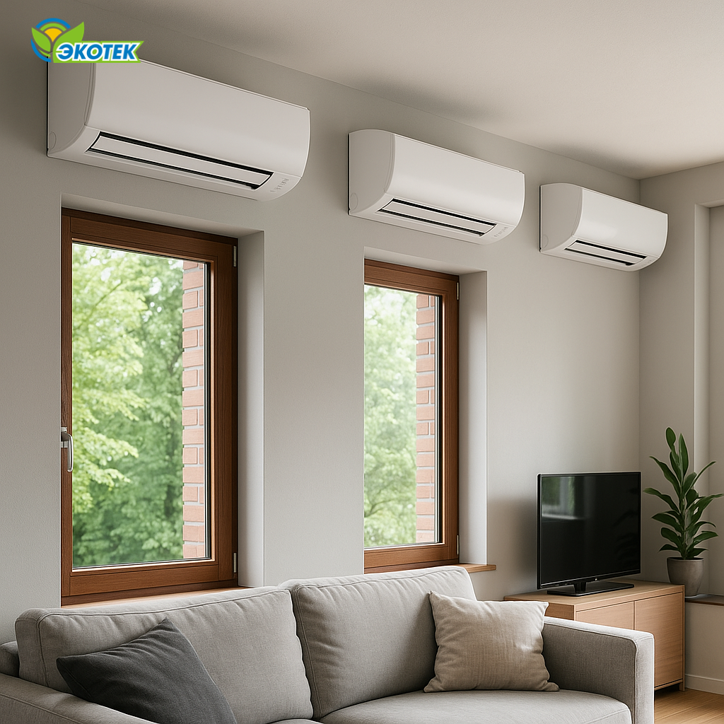 Например, гостиная + спальня + детская. В каждой комнате нужен свой климат, но фасад здания не хочется «украшать» тремя внешними блоками. 🔹 Если внешний фасад ограничен требованиями ЖКХ или архитектурой