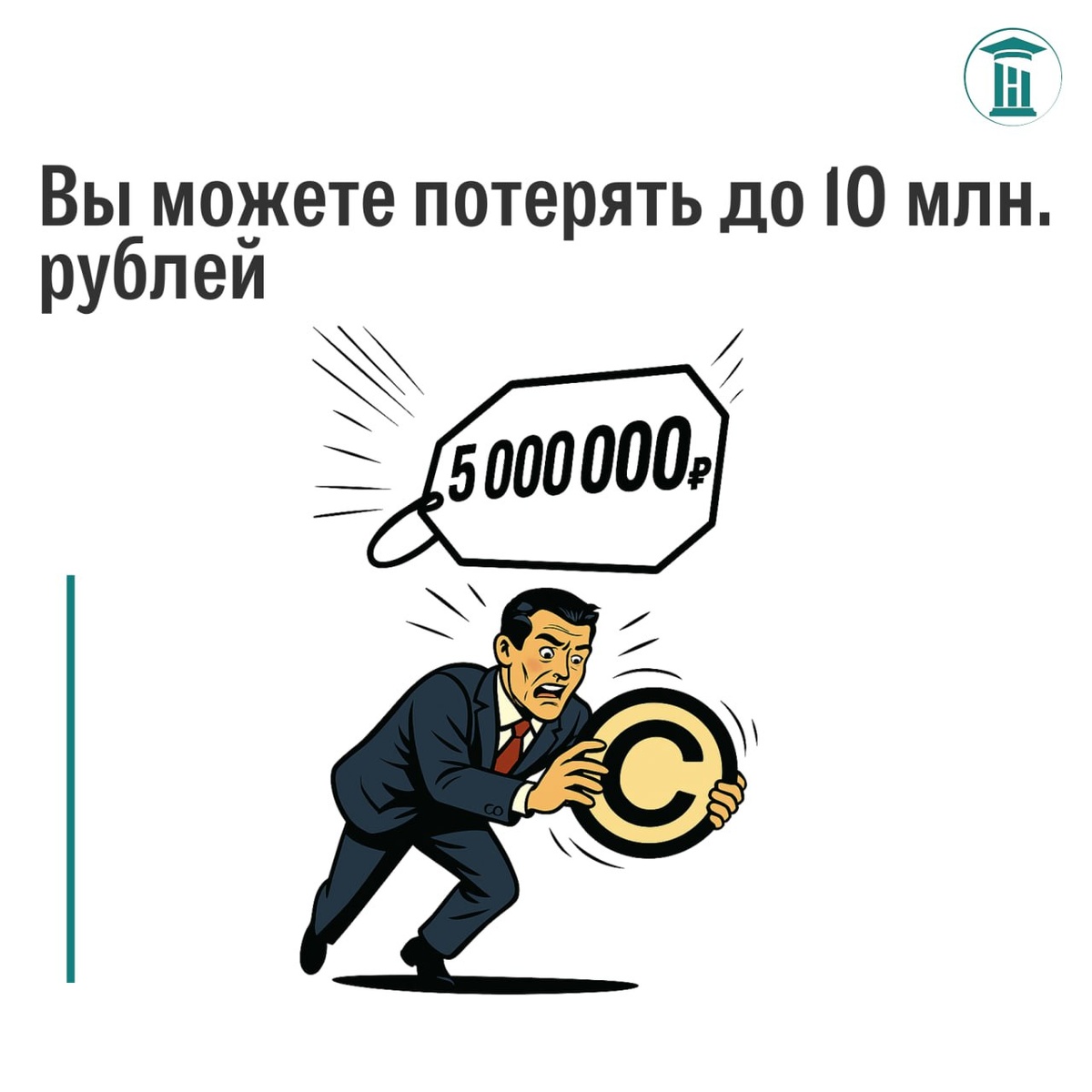 ⚡️Вы можете потерять до 10 млн. рублей😱 С 04.01.2026 г. будет усилена ответственность за нарушение интеллектуальных прав. За неправомерное использование товарного знака владелец будет вправе требовать компенсацию вплоть до 10 миллионов рублей, тогда как ранее верхний предел составлял всего 5 миллионов. Нижняя граница штрафа останется прежней — 10 тысяч рублей. Окончательную сумму определяет суд👨⚖️ ❗️Важно отметить, что новые ограничения будут применяться отдельно для каждого способа незаконного использования конкретного продукта интеллектуальной собственности. ➡️ Например, если на одном изделии незаконно воспроизведены сразу несколько результатов творчества, сумма взыскания определяется судом исходя из общей стоимости всех нарушений, однако ограничивается размером одной выплаты в диапазоне между минимальным значением и двойным максимальным. Кроме указанных изменений, закон предусматривает ряд иных нововведений, направленных на защиту интеллектуальной собственности. ❗️Новый зако