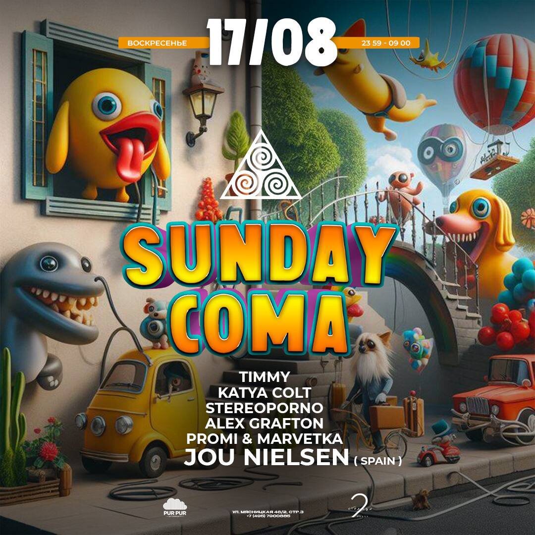 ▲ 17/08 - SUNDAY COMA Hola, амигос! У нас бешеные новости!! Вас ждет не просто завершающая Sunday Coma этого лета, а сумасшедший коллаб и даже привоз! А теперь по порядку. В ночь с воскресенья на понедельник мы объединимся с нашими друзьями - промо командой «2 Столицы». А это значит, что вас ждут новые знакомства и в 2 раза больше классных диджеев. Знаменательным событием на нашей вечеринке станет выступление музыканта из Испании, частого гостя баров острова Ибица и чартов Beatport - JOU NIELSEN! И вот что мы подумали… а не показать ли нашему гостю, как тусуется Москва по воскресенья? И пусть именно эта ночь запомнится ему как самая яркая танцевальная в его мировом гастрольном туре! Оцените лайн-ап🤌🏻 👆🏻 JOU NIELSEN 🇪🇸 🖖🏻 TIMMY 🫶🏻 KATYA COLT 💪🏻 STEREOPORNO 🤘🏻 ALEX GRAFTON 🤙 PROMI & MARVETKA ТГ канал @SundayMusicComa 🎫 Вход свободный Info & Reserve: +74957900885 FC / DC 📆 17 августа, 23:59—9:00 📍PUR PUR iBAR , Москва, Ул. Мясницкая 46/2стр3