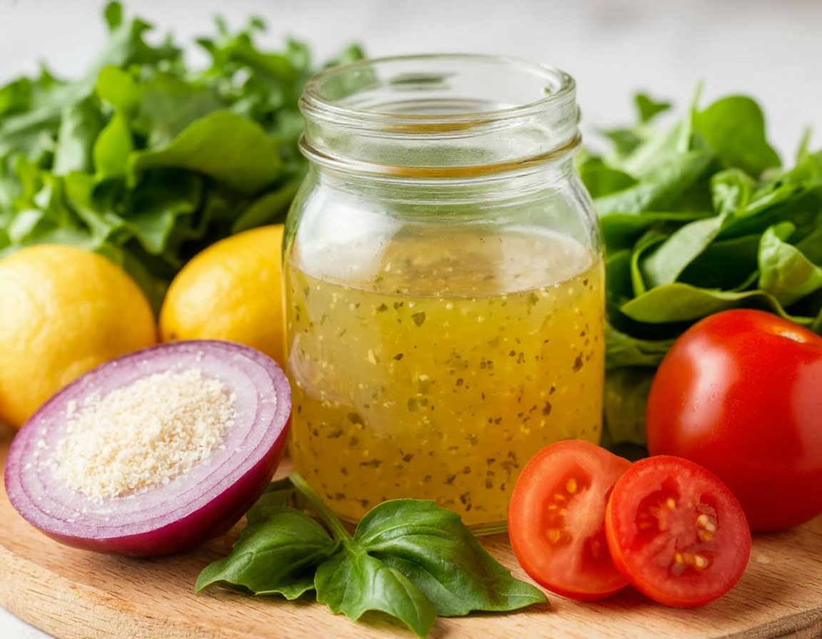 Фишка: если взбить до лёгкой эмульсии, соус становится шелковистым и лучше держится на листьях.