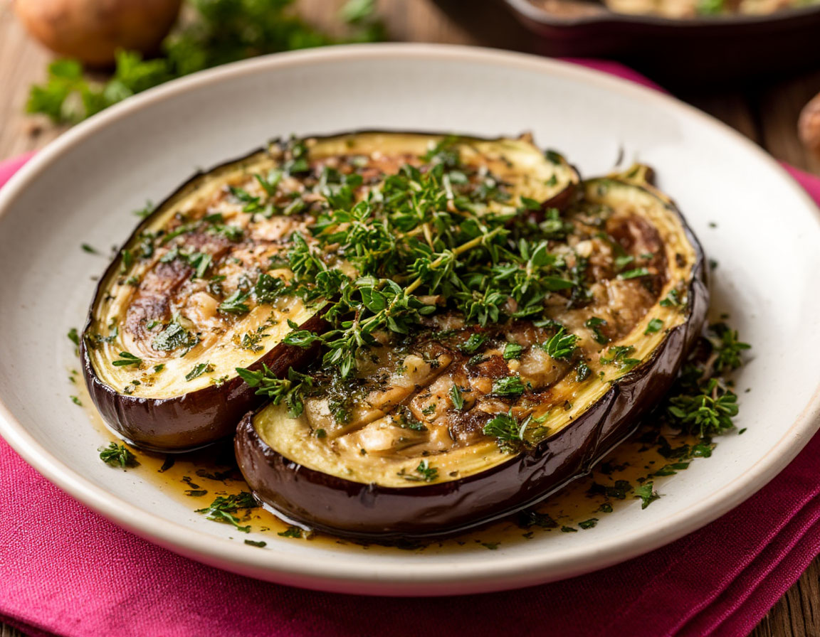 Баклажаны нарезаю на слайсы, затем вымачиваю минут 30.Дальше солю, добавляю чеснок, смазываю маслом, еще укроп и немного лимона.