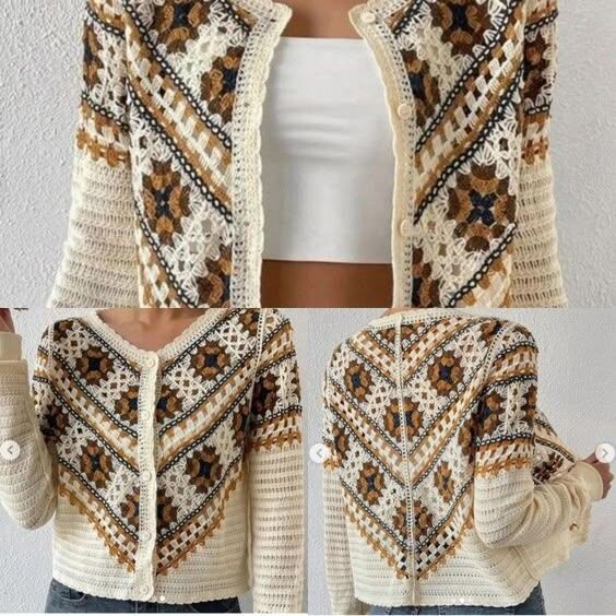 Раз вам нравится рисунок для вязания крючком "Бабушкин квадрат" значит будем продолжать рассматривать вязанные модели с этим мотивом. В августовский вечер - такой кардиган будет спасением от вечерней прохлады. А если использовать яркие и сочные цвета, то можно продлить летнее настроение! А схема расположения квадратов поможет вам в исполнении задуманного))) Отличное решение сочетать вязку спицами с узорными мотивами связанными крючком. Вариантов такого сочетания довольно много, главное выбрать то, что именно вам требуется))) Чем больше я смотрю на такие модели, тем больше хочется сесть за спицы и крючок))) Согласитесь, что такие вставки из "Бабушкиного квадрата" очень интересно смотрятся хоть в джемпере, хоть в кардигане, даже в летнем топике. А вам нравится этот узор? Делитесь в комментариях своими изделиями с "Бабушкиным квадратом" - очень интересно посмотреть на ваши варианты)))) Узор для вязания "Бабушкин квадрат" в современном исполнении. Идеи для вдохновения. Самые простые вязанн