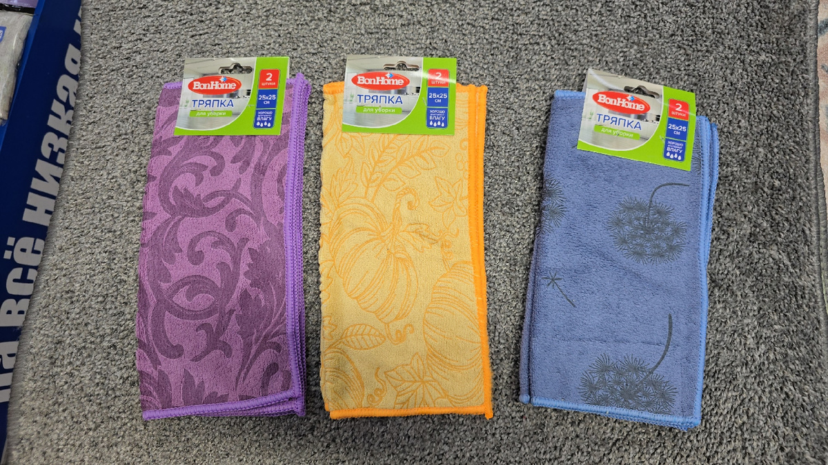 Всем большой привет! Сегодня сходим с вами в Фикс Прайс, и посмотрим на новинки. Тряпка для уборки, хорошо впитывает влагу и подходит для очищения различных поверхностей. Украшена лаконичным узором. Можно стирать при температуре 30 °C. В комплекте 2 тряпки размером 25х25 см. Состав: полиэстер, полиамид. Товар представлен в ассортименте. Китай. ЦЕна 87 рублей.