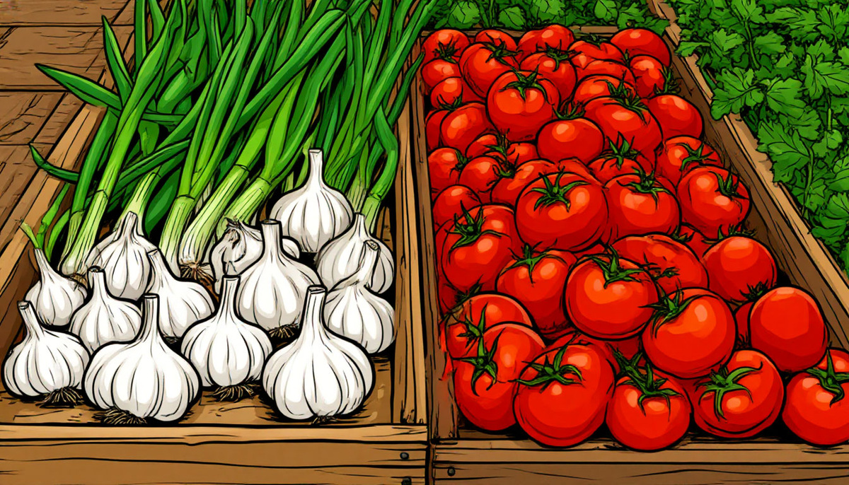 - Томаты: Можно сажать после чеснока, но необходимо убедиться, что почва достаточно удобрена.