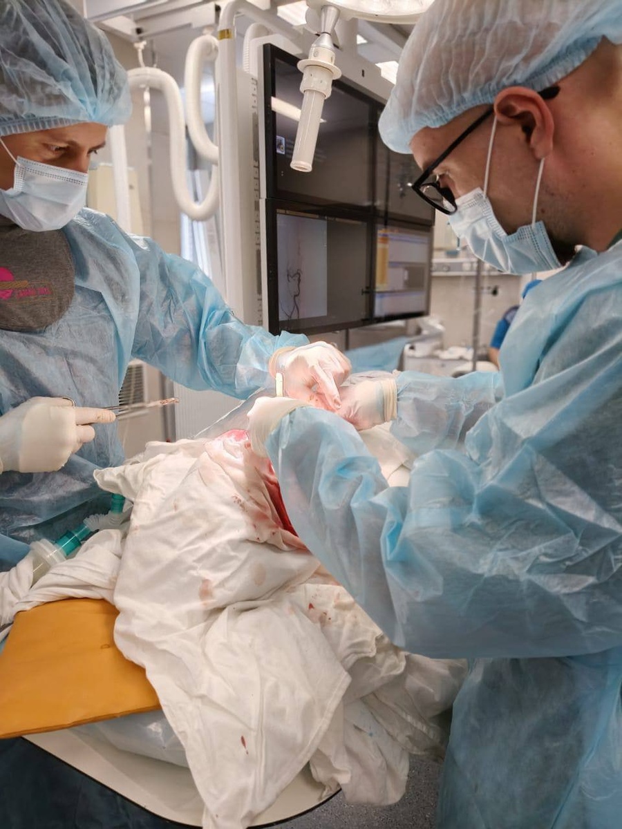 Дежурным врачом в этот день оказался Александр Посеряев, с которым в июне текущего года Давид Олегович уже провел первую в регионе гибридную операцию пациенту с инсультом.
