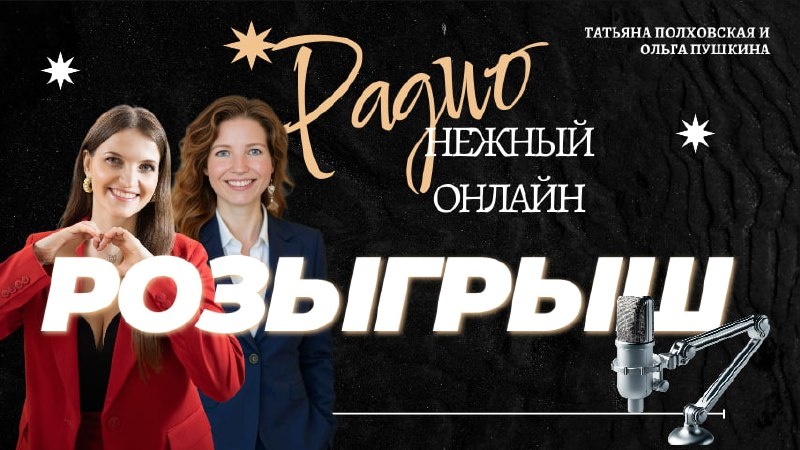 Хотите стать приглашённым гостем на радио "Нежный онлайн" и рассказать миру о том, что для вас ценно? Станьте участником РОЗЫГРЫША на радио и выиграйте 40-минутное интервью с вами в прямом эфире! Что вы получите: ✔️ возможность публично рассказать о своём продукте, своей мечте, истории успеха, хобби или поделиться любой вашей ценностью в формате диалога с ведущей; ✔️ узнаваемость, лояльность и новых подписчиков в ваш канал, ✔️ почётный статус Спикера радио, подтверждённый свидетельством, а также ✔️ новый взгляд на себя глазами новой аудитории. Нам не важно: есть ли у вас специальная подготовка или спикерские навыки. Нам важна ваша ценность / миссия и желание о ней заявить! ЧТО НУЖНО, ЧТОБЫ ПРИНЯТЬ УЧАСТИЕ 1️⃣ Быть подписанным на организаторов акции: 👉🏻 радио "Нежный онлайн" 👉🏻 Кухня экспертов с Татьяной Полховской 👉🏻 Разговорный магнетизм✨Ольга Пушкина 2️⃣ Написать короткий пост на тему "О чём я хочу рассказать Миру" и разместить его в ваших соцсетях с отметкой "Хочу выигр