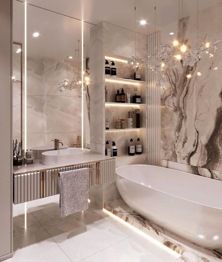 Правильно подобранные аксессуары делают пространство удобным каждый день и собирают интерьер в единую, гармоничную композицию. ТОП‑8 полезных вещей в ванной 1. Держатель для туалетной бумаги 2. Подставка под зубные щётки или стакан‑держатель 3. Держатель для полотенец 4. Крючки для полотенец и халатов 5. Подставка с ёршиком 6. Полотенцесушитель 7. Мусорное ведро 8. Мыльница или дозатор Эти три вещи обязательны почти в любом санузле — держатель для бумаги, держатель для полотенца, ведро. Остальное можно докупать по мере использования. Держатель для полотенца - Для 1–2 человек достаточно прямой штанги. Для частых гостей удобна модель со встроенной полкой под запасной текстиль. - Кольцевые модели менее практичны: вмещают одно полотенце и дольше сушат. - Напольные варианты занимают место и не подходят для небольших ванных. Держатель для туалетной бумаги - Открытый — самый простой и бюджетный, рулон легко менять. - Полузакрытый — верхняя планка защищает от брызг. - Закрытый — максимально ги