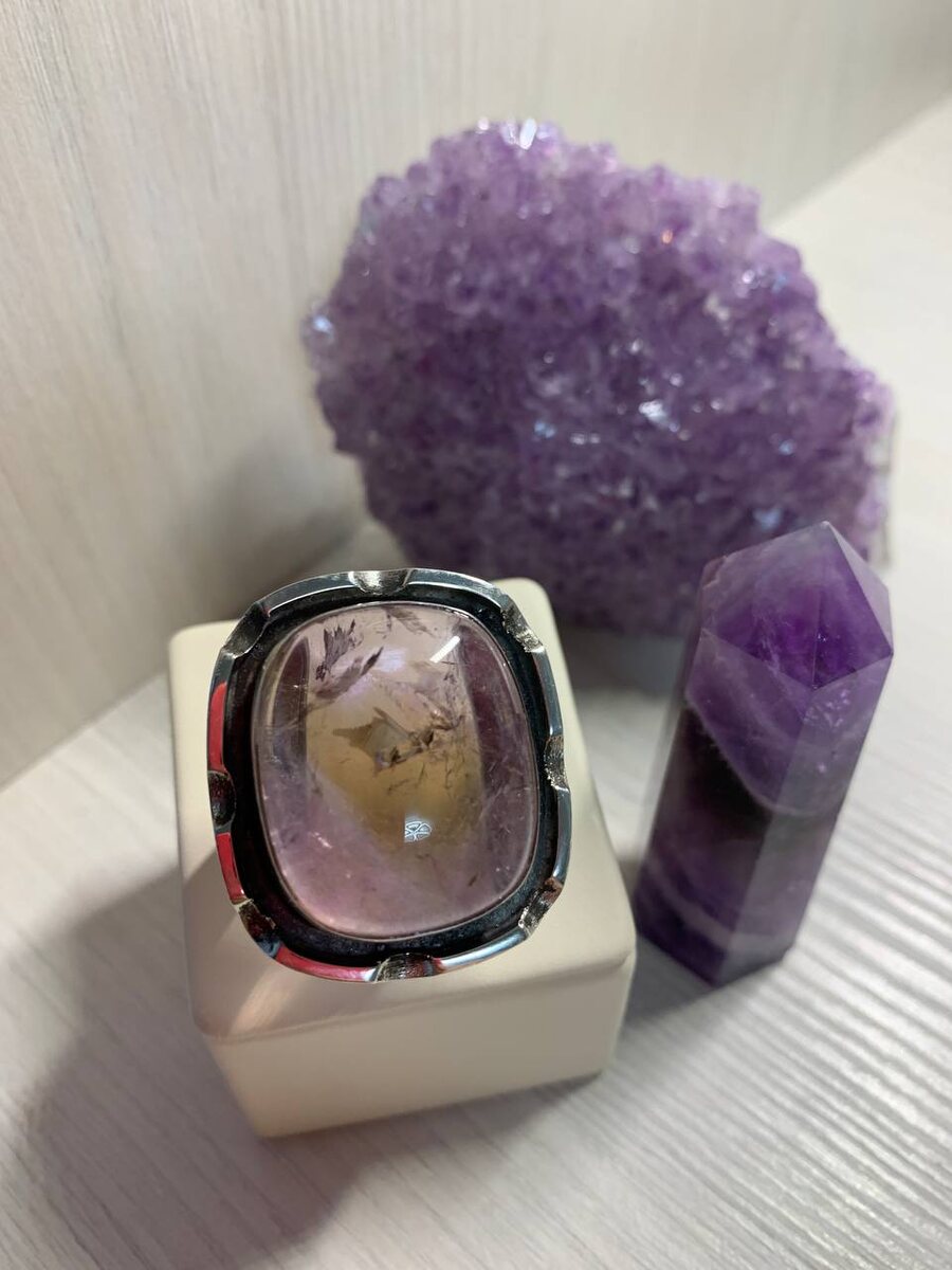 🔮СЕРЕБРО🔮РУЧНАЯ АВТОРСКАЯ РАБОТА 🔮АМЕТРИН 🔮ВЕС 20,18🔮РАЗМЕР 19🔮ЦЕНА 9 000🔮 ‼️Аметрин — это двухцветный редкий минерал, который сочетает в себе названия и цвета сразу двух представителей группы кварца: аметист и цитрин. Самоцвет далёкий родственник авантюрина, сапфира, турмалина и сердолика. Оттенок неравномерно меняет свой цвет по кристаллу, переходя из сиреневого в лимонный или желтый. Есть у самоцвета и ещё одно название — боливианит. Это имя он получил благодаря своему происхождению — Боливия.