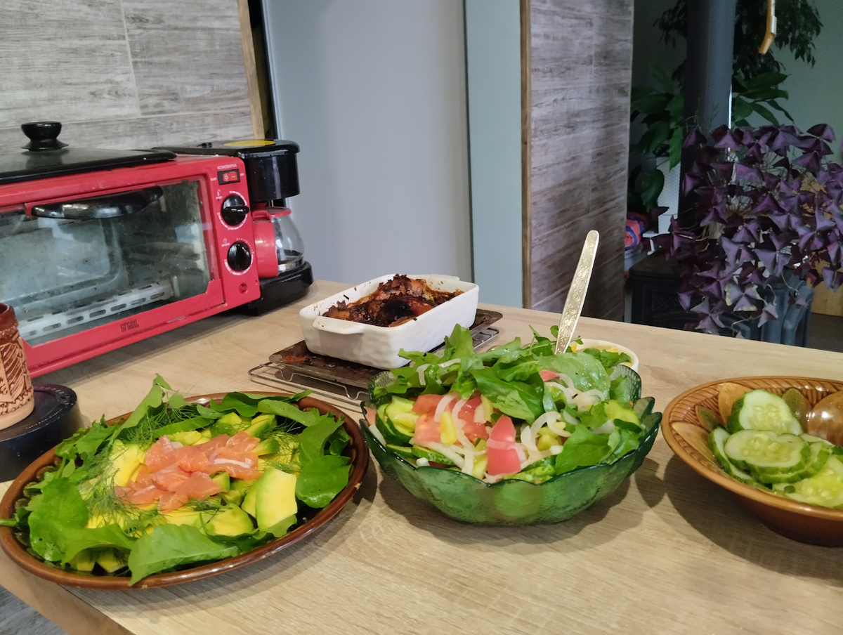 Привет, друзья! В субботу у нас с ДМ был прекрасный ужин, я бы даже сказала шикарный. По крайней мере именно такой он и был для нас. После работы я не спеша сходила в Фитнес Хаус, с удовольствием отметила на весах, что вес мой тает потихоньку, питание, которое внедрил ДМ в этом мне помогает, да ещё и сауна, русская баня ,хамам и бассейн с джакузи на второй год посещения видимо все же тоже потихоньку стали воздействовать на мой организм в "похудилительном ключе". Думаю в конце сентября я обнародую итоги изменения веса, как раз пара месяцев пройдет с н того момента, как наш доморощенный диетолог ДМ внедрил свою систему питания для нас, и результат должен будет закрепиться - я так думаю. После спа за мной заехал ДМ и мы вместе заскочили в наш Магнит любимый, я подумала, что хочу авокадо купить, тем более, что на него был дополнительный кешбек. Форель купила со скидкой, очень хорошая и вкусная оказалась, а цена просто демпинговая. Я использовала почти весь кусочек для салата,