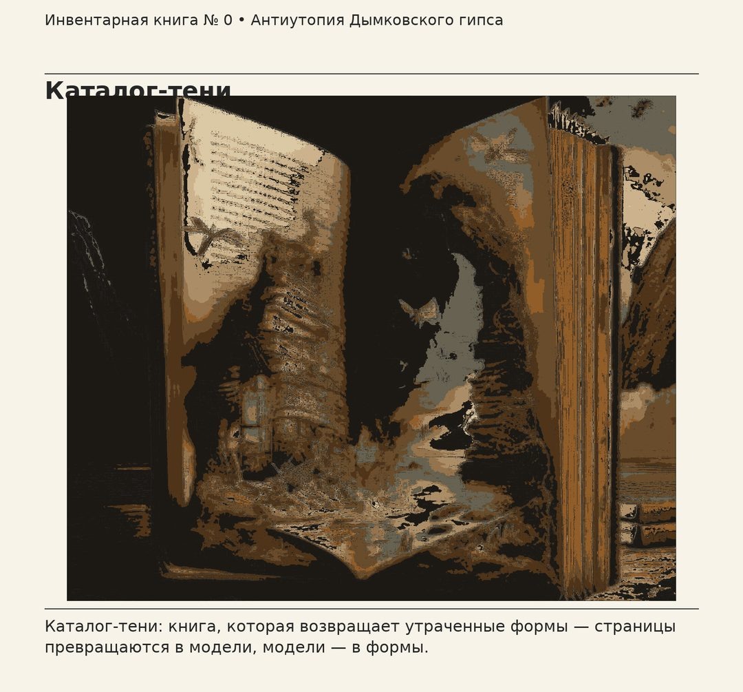 "Каталог-тени" оказался не книгой, а «механизмом обратной связи». Он показывал не только «что было», но и как исчезало. На его страницах стояли кадры «санитарных очисток», превью с торговых площадок, мошеннические росписи поверх подлинных клейм, белая крошка на обугленных полах — всё то, что мы обычно называем «процессами» и редко — потерями.