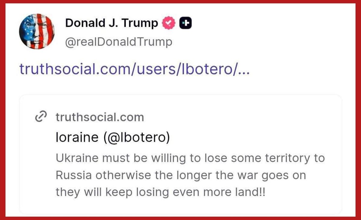 Трамп репостнул сообщение, что Украина должна быть готова потерять территории.