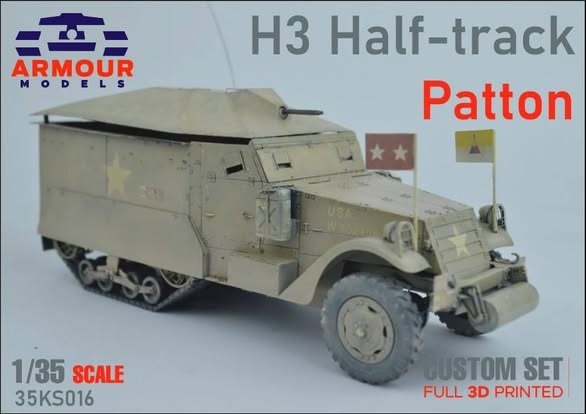 Словацкая Armour models выпустила на 3D-принтере конверсионный набор для постройки модели командирского бронетранспортера M3 генерала Паттона в масштабе 1/35: M3 Half-track Patton (каталожный номер 35КS016)