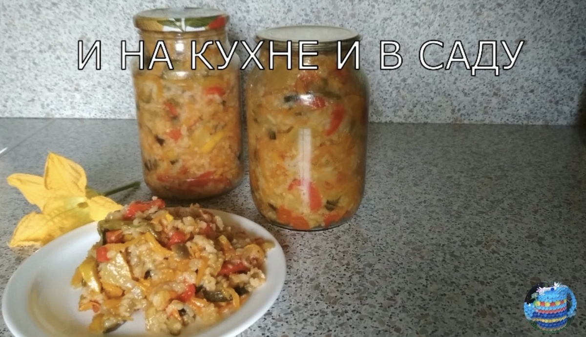 Добрый день, вы на канале И НА КУХНЕ И В САДУ. Сегодня я приготовлю рагу из овощей с рисом на зиму, без стерилизации. Это замечательный вид закуски в состав которой входит довольно большое разнообразное количество овощей. Зимой открываем баночку и уже готовое блюдо. Все овощи выращены в нашем огороде это - репчатый лук, баклажаны, патиссоны, кабачки, морковь, помидоры, перец и чеснок. Овощи моем, чистим, удаляем плодоножки, у перцев и кабачков удаляем семена. Овощи я не взвешиваю, всё произвольно. Нарезаем овощи не очень мелко, нарезка может быть любой. В глубокую ёмкость наливаем немного масла. Закладываем лук, пассируем, но не зажариваем, по очередно закладываем овощи: баклажаны, патиссоны, кабачки, перемешиваем. Затем добавляем морковь, перемешиваем, солим, чтобы овощи быстрее дали сок и перемешиваем. Закладываем томаты, болгарский перец, перемешиваем. Тушим до готовности, я обычно готовлю аль денте. Затем добавляем отварной рис, /рис может быть любой, главное не переварит