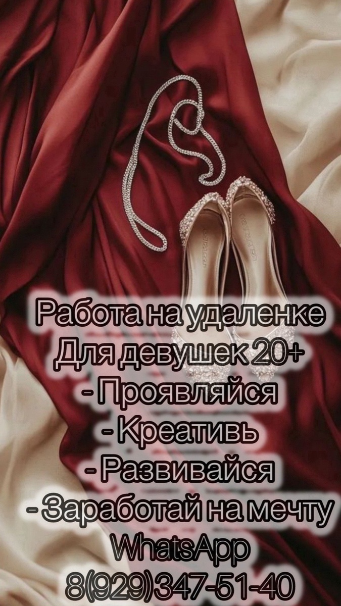 СРОЧНО☝️В онлайн -офис требуется девушка, для размещения объявлений и обработки заявок. ✨График работы свободный, в удобное время. Возможность карьерного роста. Бесплатное обучение. 💳Зарплата от 40 000 руб. 〽️Необходимо наличие постоянного интернета, возраст строго от 20 лет, занятость от 4-5 часов в день. За подробной информацией просьба обращаться в 📲WhatsApp/Telegram :8 929 347 51 40 👩💻 Диана Шевченко ➰ ВК