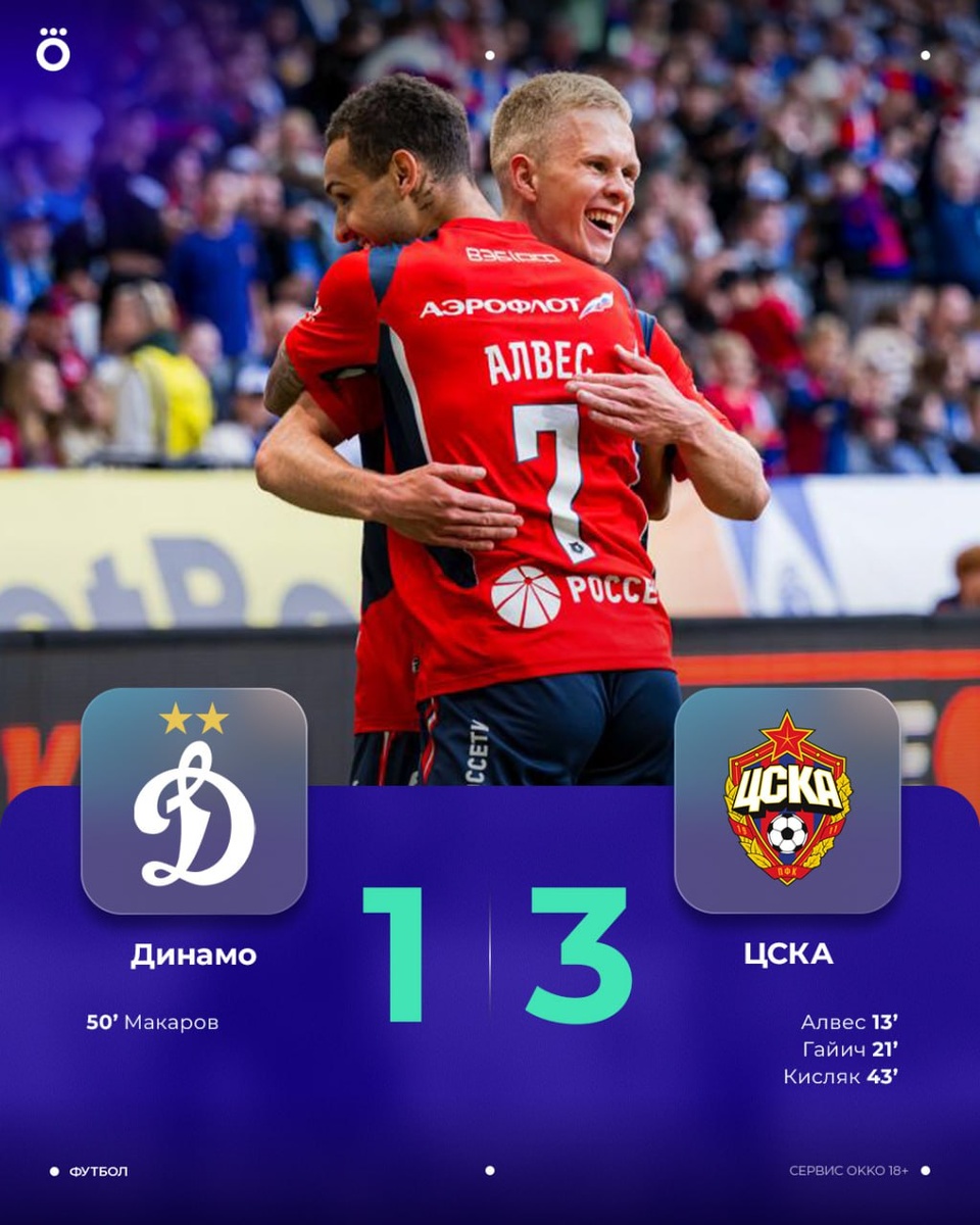 ЦСКА переиграл «Динамо» в московском дерби. У Карпина — 3 поражения в 4-х последних матчах 🫠 Новичок армейцев Матеус Алвес оформил 1+1. Заслуженный MVP встречи 👏🏻 📸 ПФК ЦСКА