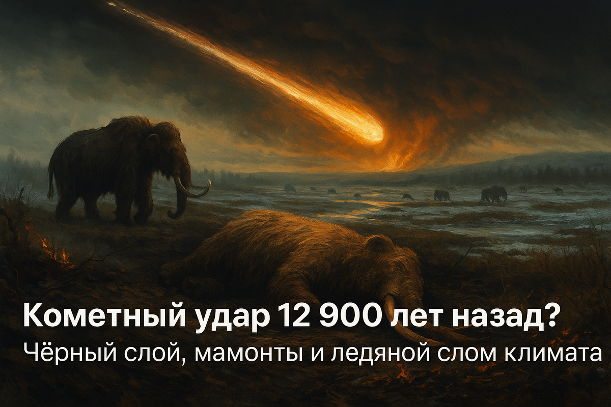 - Короткая вспышка — и мир сменил эпоху. По данным группы геологов и археологов, около 12 900 лет назад на Северной Америке возник тонкий «чёрный слой» — след пожаров и частиц внеземного происхождения. Он совпадает с началом резкого похолодания Младшего дриаса и исчезновением мегафауны. Что это было — кометный взрыв в атмосфере?
