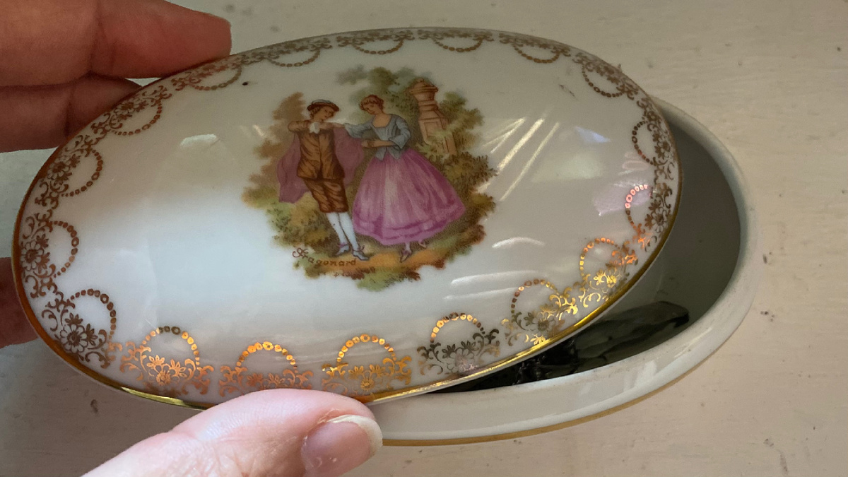 На блошиных рынках во Франции можно купить не только одежду и сумки, но и предметы антиквариата, мебель, посуду и бижутерию. В общем, все,что можно на эти рынки дотащить. Поначалу у меня разбегались глаза и хотелось хватать все! Но постепенно я начала разбираться в некоторых марках фарфора и керамики и покупать только то, что мне действительно было интересно. Так у меня на туалетном столике появилось несколько шкатулочек из Лиможского фарфора, очень известного во Франции и не только. Покупала я их по цене не больше 2 евро за штуку. Это своего рода игра - дороже не интересно. После шкатулок я переключилась на фигурки из того же Лиможского фарфора После Лиможского фарфора у нас в буфете случайно появилась ваза для фруктов знаменитого здесь дома Мустье. на нее я не пожалела целых 4 евро (400 рэ) Чуть позже к вазе присоединилась сахарница, или бонбоньерка того же дома Мустье. Я просто не смогла пройти мимо А вот мой муж очень любит керамику дома Валлорис и коллекционирует небольш