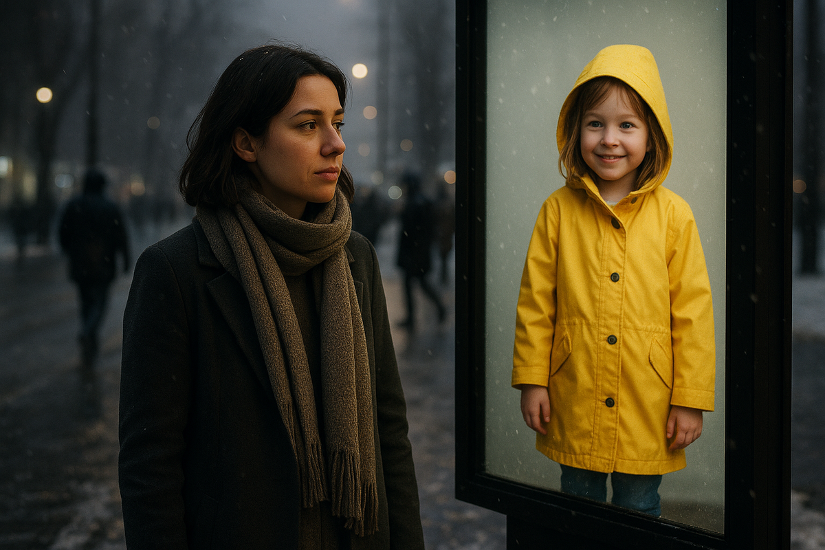 — Антон, угадай, кого я встретила у метро? — Нина прижала телефон плечом, чтобы не уронить перчатку. — Себя. В жёлтом плаще, лет шести. И улыбаюсь так, будто мне заплатили за счастье.