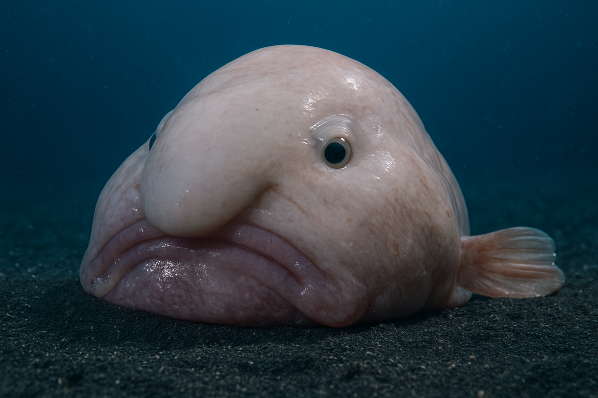 - Вовлекаем: Представьте: кромешная тьма, холод, давление в десятки раз выше, чем на суше. И тут плывет этот "живой кисель" с выражением вечной тоски. Он просто дрейфует, поедая то, что проплывает мимо. Самое человечное лицо в океане? Или самый печальный инопланетянин?
