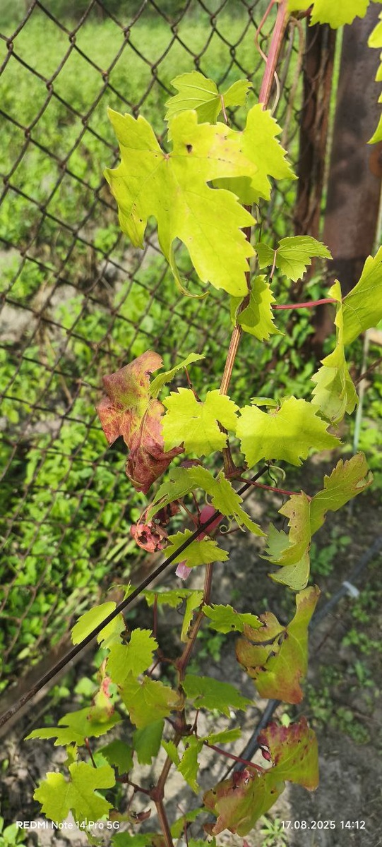 И ещё. Для бело ягодного сорта, каким является Краса Севера слишком уж красные листья. Я даже уточнил у виноградаря был ли урожай. Да, был. Он белый. Значит это (краснота!) ещё раз подтверждает сильное нарушение проводимости лозы.