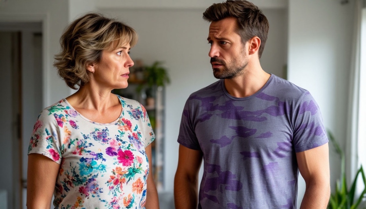 Волосы взъерошены, будто только что встал с кровати. Он окинул взглядом сумку и конверт, который Галина Павловна держала в руках. Его лицо изменилось — брови сдвинулись, губы сжались в тонкую линию.