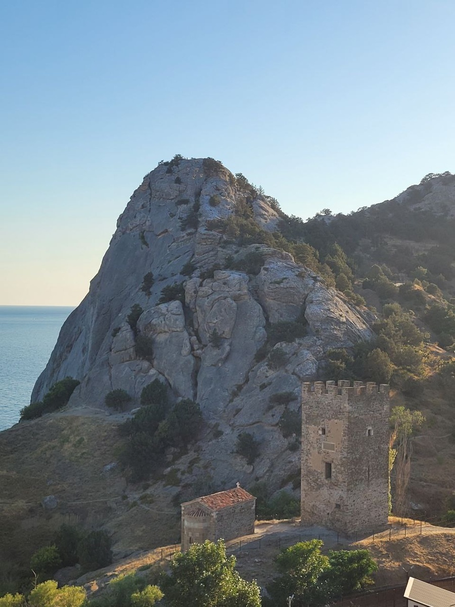 Вид с крепости на башню Астагвера и старый храм 12 апостолов