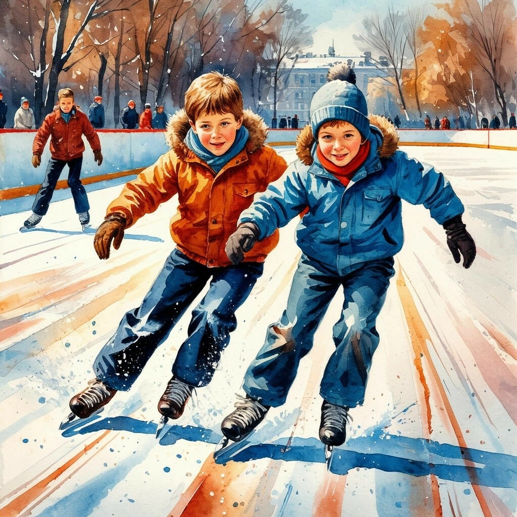 И они поехали к дальнему углу катка, где лед был потише. Сашка терпеливо объяснял, поддерживал под локоть, показывал, как отталкиваться. Юрка, стиснув зубы, пытался. Он падал еще раз пять, но вставал. И к концу вечера он уже мог проехать метров десять без падения, пусть и криво, как раненый жеребчик.