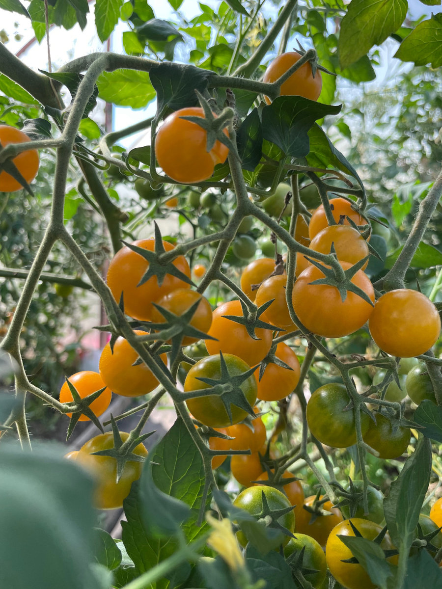 Утро. Дача. Суббота. 7.30 Проснулась как всегда без будильника и позволила себе немного поваляться. Но нет, надо встать и начать дела. Сегодня соберутся все мои четверо детей на даче и ещё племянник, вечером приготовим плов на мангале и устроим ужин на террасе. А до этого днём много дел. Первым делом на повестке дня помидоры. Половина теплицы готова, осталась ещё половина. Нужно убрать лишние листья и обрезать верхушки у высокорослых помидор. Включаю на телефоне аудиокнигу, продолжаю слушать «Крутой маршрут» и засучив рукава, начинаю работу. 9.00 Позвонила старшая дочка Лерочка и сказала, что скоро выезжает. Надо будет её встретить на остановке. Увлеченно работаю в теплице. Помидоры радуют, впрочем, как и всегда. Очень люблю жёлтые черри, в этом году посадила их побольше, целых 5 кустиков. Они сладкие, как конфетки. Большие мясистые тоже имеются и обычные средние тоже. Подкармливаю помидоры только органическими удобрениями. Урожаем довольна. 11.00 Дочка приехала, поехала её встреча