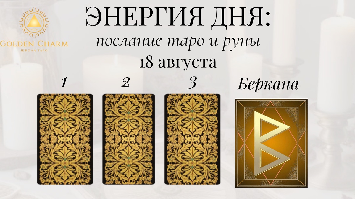 Заказать личный расклад тут✅ Прогноз на 18 августа : что тебя ждёт Приходи на обучение Таро ✅ Выбери карту — 1, 2 или 3 — и узнай, какой путь для тебя: 1. Солнце Это день солнечного света и радости. Возможно получение хороших новостей, признание заслуг, счастье и гармония внутри. Наслаждайся моментом, будь открыт миру! 2. 2 Мечей Время неопределённости и выбора между двумя возможностями. Попробуй рассмотреть ситуацию беспристрастно, доверяя интуиции и сердцу. Решение придёт само, если сохранять спокойствие. 3. Король Пентаклей Удача сопутствует делам материального плана. Сегодня хороший день для переговоров, заключения сделок, инвестиций. Будь решительным и уверенным в себе — успех близок. Руна дня — Беркана Время зарождения новых проектов, идей и отношений. Пусть этот день станет началом прекрасного пути! Напиши цифру карты + БЕРКАНА в комментариях, чтобы активировать энергию. Хочешь личный расклад? Пиши — посмотрим, что ждёт тебя: Заказать личный расклад тут✅ О
