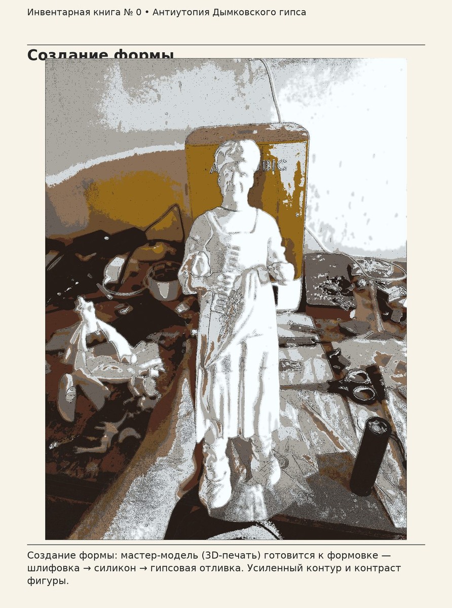 Формы начали возвращаться туда, где им всегда было место: в слободу. Не к чиновнику — к дому. Возник центр ремесленной слободы Дымково: мастерские, музейный зал, где поставлена не витрина, а постамент, и цифровой музей, который позволяет тем, кто не доедет, увидеть то, что мы снова имеем. «Каталог-тень» перестал быть только свидетельством исчезновения и стал производственным планом памяти: кадры — в модели, модели — в формы, формы — в Дымково.
