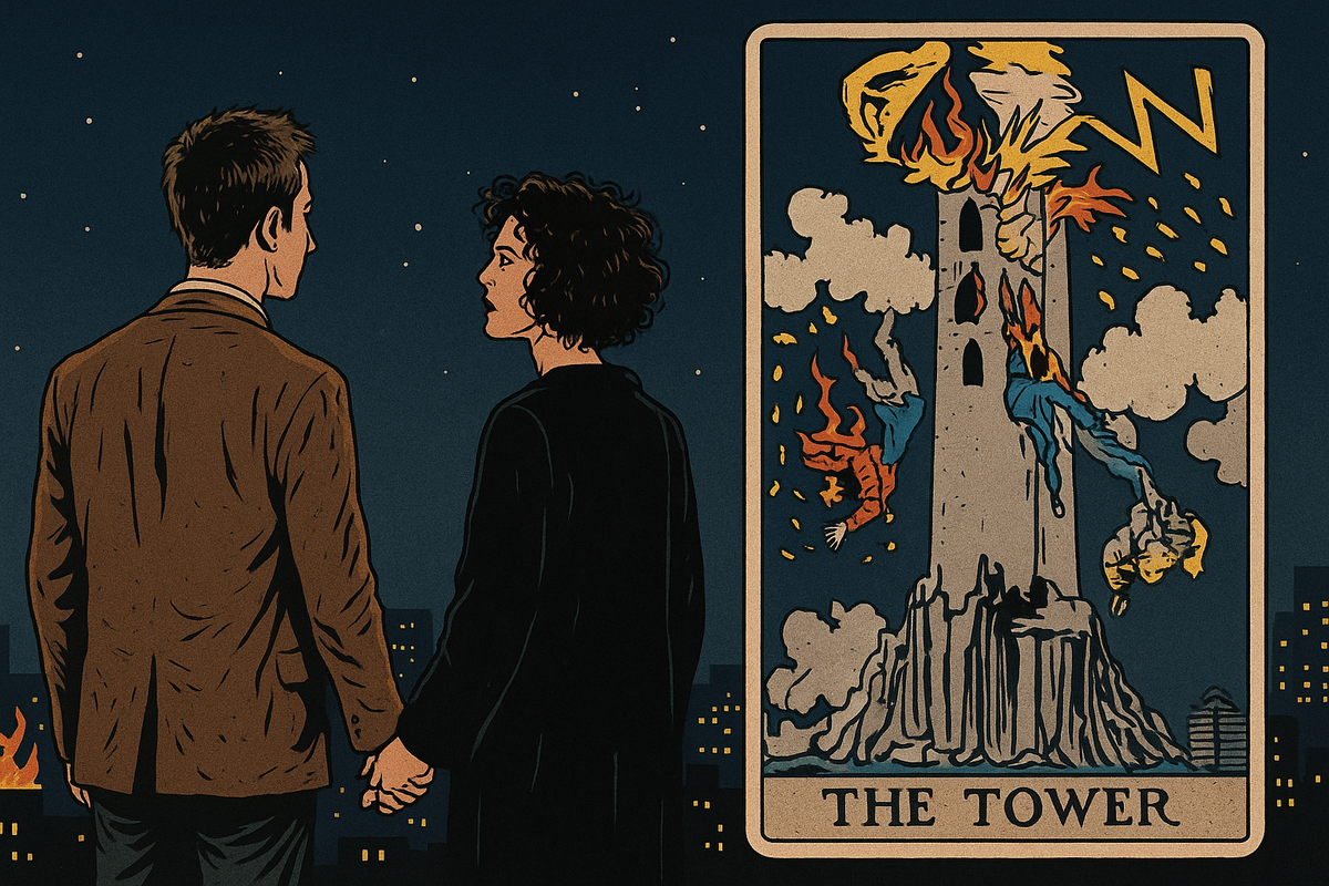 Важно, что Башня в таро не только о крушении, но и об освобождении. Разрушение иллюзий открывает пространство для подлинного выбора. Так же и в «Бойцовском клубе»: пройдя через хаос, герой в финале стоит рядом с Марлой у окна и смотрит на рушащиеся здания. Внешне это апокалипсис, но символически — катарсис. Его старый мир мёртв, но именно поэтому появляется возможность построить что-то настоящее. Этот кадр визуально и смыслово полностью повторяет архетип Башни: катастрофа становится точкой начала.