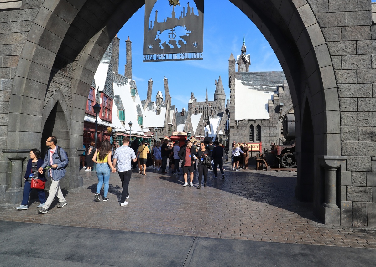 Что касается экскурсии по территории студии, каждый новый раз, что я здесь был, они что-то убирали, что-то добавляли. Сейчас появилось два момента с 3Д анимацией — сделано очень неплохо. При этом я заметил, что всегда, включая 2010 год, когда экскурсионный поезд проезжал по съемочному городку, гид показывал: «А вот знаменитая ратуша с часами из фильма “Назад в будущее”». В этот раз мы ее тоже проезжали, но экскурсовод внимания публики на нее не обратила. «Omnia transeunt et id qouque, etiam transeat»[3]. Из того, что в парке осталось с 1992 года — ходящий по улицам «Франкенштейн»[4]. Но и его уберут скоро. Парк стал за 30 лет намного более семейным, а у детишек вряд ли высокий унылый мужик вызывает хоть какие-то ассоциации. Так и бродил он в этот раз, неприкаянный. А когда-то выстраивалась очередь, чтобы с ним сфотографироваться, — помню, я сам отметился. Убрали веселых толстых дядек в черном, играющих джаз, — героев фильма «Братья Блюз», которые были здесь еще 9 лет назад. Уверен, что по той же причине: никто их сейчас не знает. Это вам не «Миньоны» или Гарри Поттер. Для продвижения последнего с прошлого моего приезда здесь построили целый городок.