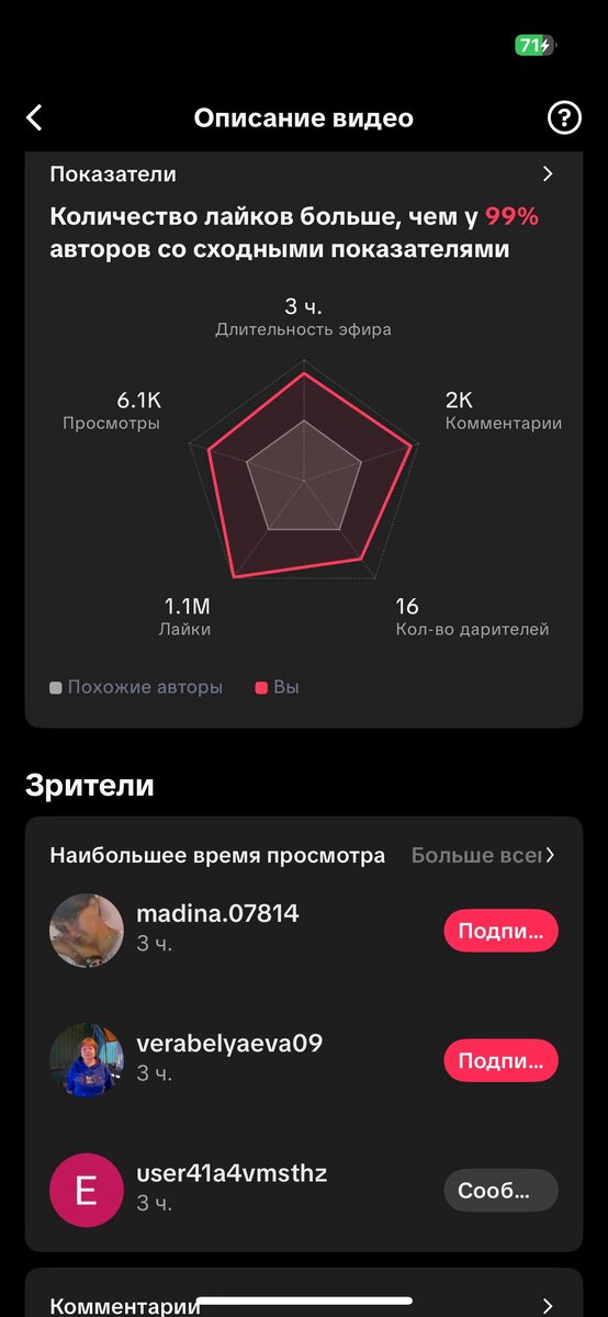 🔥 Ещё один яркий эфир — ещё больше победителей! 🔥 Сегодня мы снова сделали невозможное: ✨ 1.1M лайков ✨ 6.1K просмотров ✨ 2K комментариев ✨ 16 дарителей А это результат, который выше, чем у 99% авторов TikTok! 🚀 🏆 ТОП-3 победителя сегодняшнего эфира: 🥇 madina.07814 — настоящая поддержка на протяжении всего эфира! 💎 🥈 verabelyaeva09 — снова среди лучших, стабильность на высоте! 🔥 🥉 Елена Герасимова — ворвалась в топ и заслуженно заняла место среди победителей! 🌟 Каждый день всё меняется, и завтра именно ты можешь оказаться на вершине 🏆✨