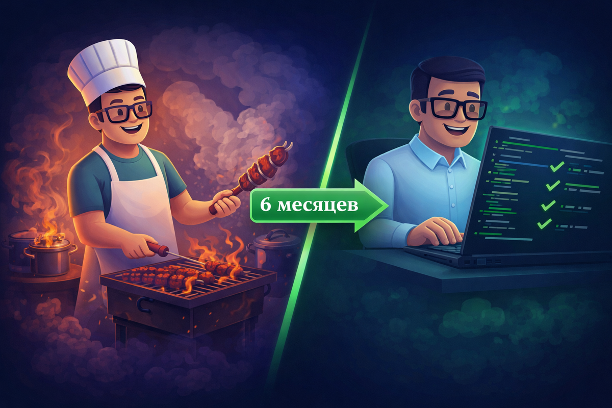 Тринадцать лет моей жизни были отданы кухне. Сначала плита, потом мангал, потом снова «плита + мангал». Казалось, что жизнь — это вечный цикл: заказ — готовка — подача. Грохот кастрюль, крики «срочно два борща и порцию шашлыка на третий столик!», запах жареных котлет, который въедался даже в волосы и куртки. Я шутил: если меня похитят, родственникам достаточно будет следить за запахом специй. Ну или за следом борща и шашлыка. Летом 2020-го всё оборвалось. Ресторан закрылся, зал пустовал, зарплата была символической. Я стоял перед потухшим мангалом и думал: «А если не сейчас, то когда?» Решение пришло неожиданно быстро — уйти. Осенью я записался на курсы по тестированию. Программа была рассчитана на семь месяцев. Для человека, у которого «рабочий софт» — это нож, шампур и бутылка масла, термины «тест-кейс», «баг-репорт» и «Git» звучали как новые названия блюд. Первые недели были пыткой. Я путал кнопки, забывал термины, бесился, как будто только что сжёг шашлык. Но привычка, выработанная