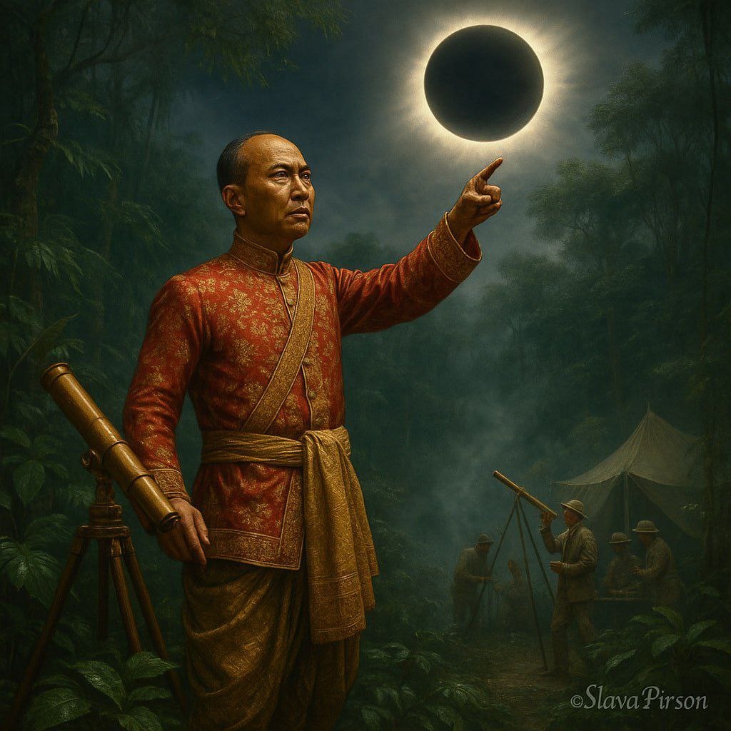 🤩🤩🤩🤩 «Король-астроном» против Парижа. Рама IV (Монгкут) самостоятельно рассчитал траекторию и время затмения 18 августа 1868 года точнее французских астрономов — придворная экспедиция наблюдала феномен в джунглях Сиама. (Через недели монарх скончался от малярии, которой заразился в поездке.) #Факты
