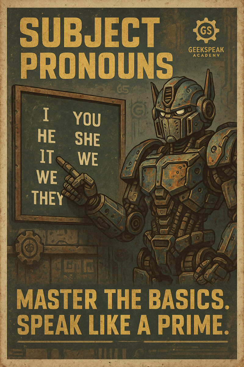 📄 Протокол Местоимений — «Кто управляет этим предложением?» 🧭 Кому: Курсантам ESL из Отряда Синтаксиса и Отдела Грамматической Навигации 🔍 От: Департамента GS по Управлению Подлежащими и Командованию Предложениями 📅 Дата: 28.08.2025 🎯 Цель миссии: Личные местоимения — это пилоты ваших грамматических кораблей. Они действуют, двигаются, говорят — и порой спасают галактику грамматики от хаоса. Знай их. Используй их. Будь ими. 🧠 Что такое личные местоимения в роли подлежащего? Они заменяют подлежащее (того, кто действует) и делают вашу речь проще и умнее. 👤 Кто? 🔤 Личное местоимение (подлежащее) 💬 Примеры из практики: ⚠️ Тревога для курсантов: Не путай свой отряд! Используй личные местоимения только как подлежащее. ❌ “Me go to class.” — Неправильно ✅ “I go to class.” — Правильно 📌 Заключительный инструктаж: Личные местоимения — ваши передовые бойцы. Без них грамматика развалится, как корабль без пилота. Так что в следующий раз, когда соберешься в путь по предложению, спроси себ