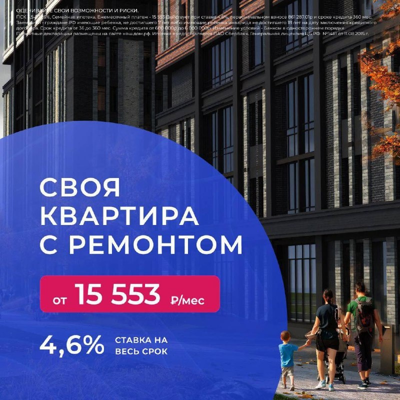 Квартира мечты доступна от 15 553 рублей в месяц